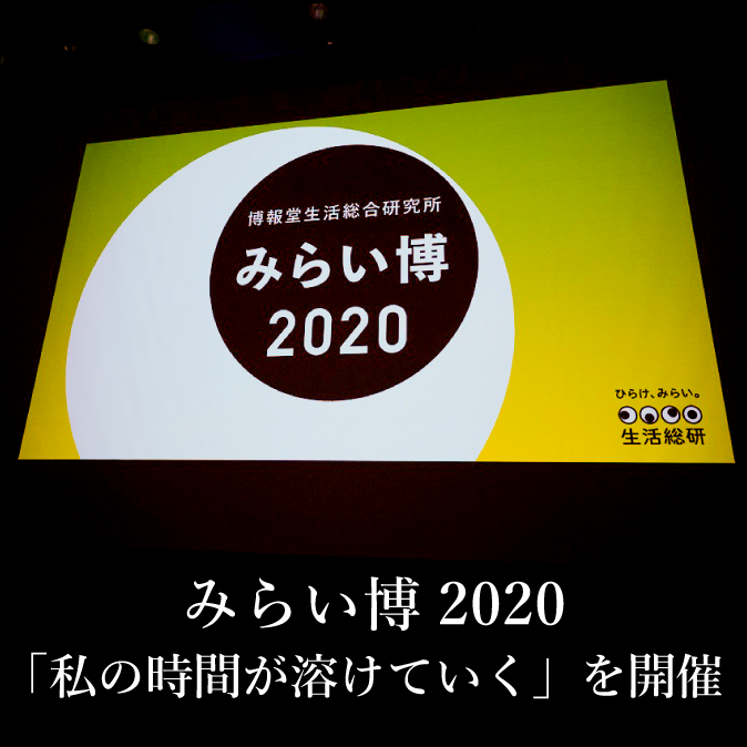 生活総研では、2020年1月に開催した「みらい博」*で『私の時間が溶けていく』と題し、生活者の「時間の使い方」に関する研究の発表を行いました。本コラムでは、コロナ以前から変わりつつあった、そしてコロナ禍によってさらに変化した「時間の使い方」について触れたいと思います。