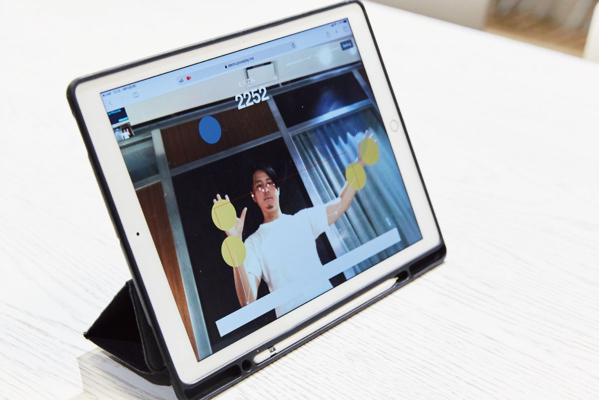 「POSE & PLAY」は、スマホやタブレット、PCのブラウザカメラを使って、子どもたちが自宅で運動できるブラウザベースのツールです。カメラに映る自分の姿勢を画面上のマーカーに合わせて、ゲーム感覚で楽しみながら運動できるというのが特徴です。先日から公開しているプロトタイプを林さんに実演していただきますね。
