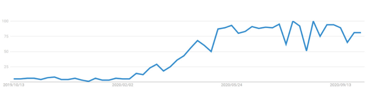 <インターネットにおける「ウェビナー」の検索件数の推移>