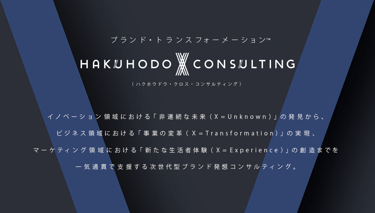 博報堂グループは今回、こうした考えに基づく変革を『ブランド・トランスフォーメーション』として大きく掲げ、HAKUHODO X CONSULTINGの名のもとに変革支援コンサルティングを提供していくという。長年にわたって多くのブランドコンサルティングに携わってきた実績と知見を活かして、独創的な企業活動・事業活動を生み出していくことを目指す。
