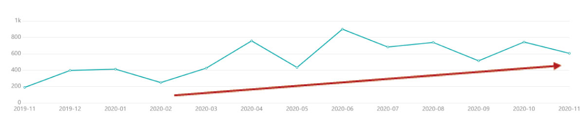 中国のソーシャルリスニングツールを使って「軽(=ライト)養生」を検索したところ、特にコロナ感染急拡大の2月以降にインターネット上で投稿数が右肩上がりに上昇していることがわかります。
