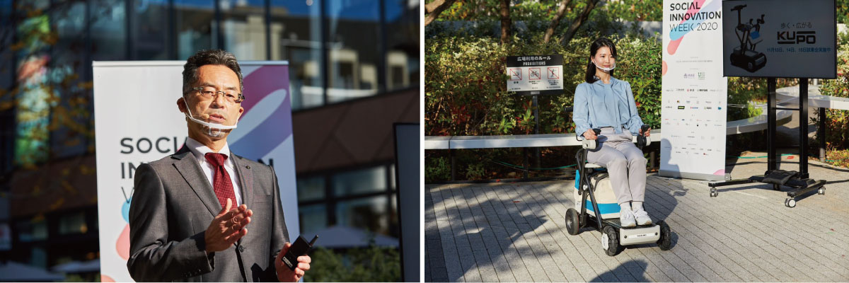 渋谷区民の20%以上は高齢者です。あらゆる世代の人々が自分らしく、生涯にわたり元気に暮らせるためのサービスとして、スズキが開発した乗車も歩行もできる可変電動アシストカート「KUPO」を活用したパーソナルモビリティサービスも実施します。