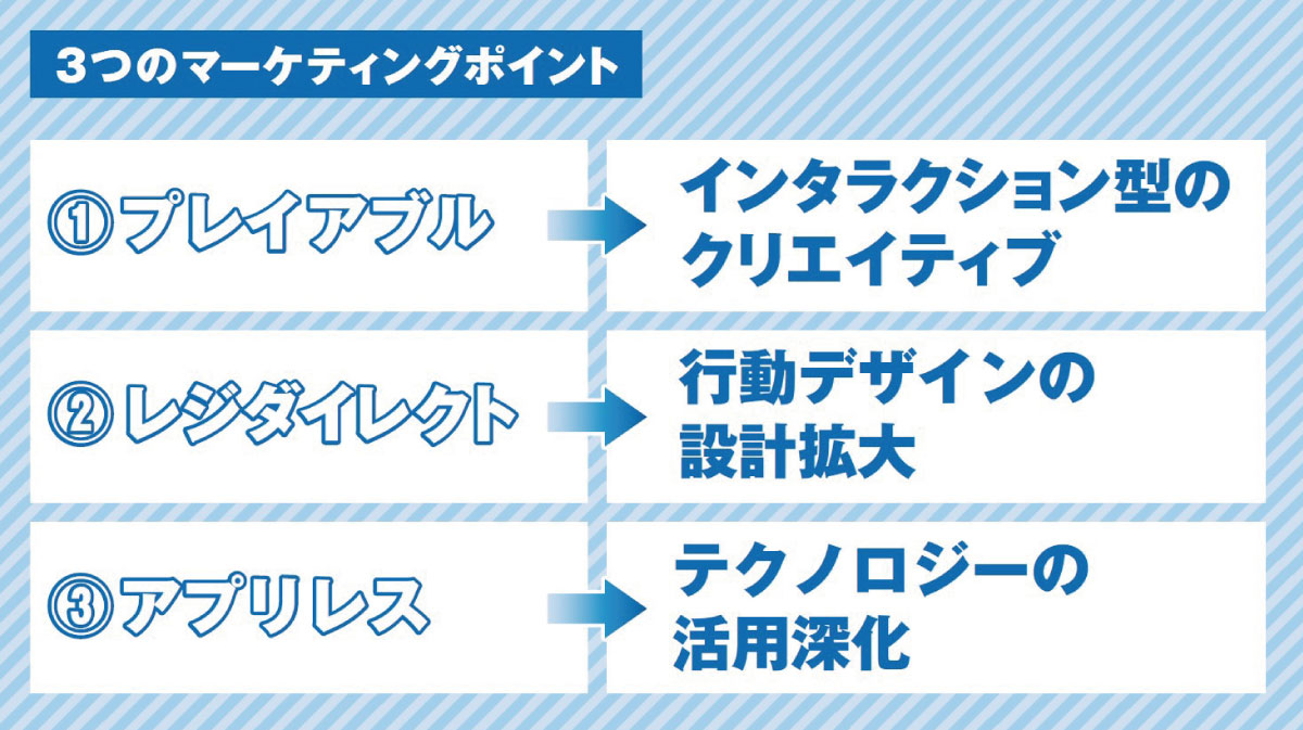 まずプレイアブル・インターフェースとは「インタラクション型のクリエイティブ」と言えると思います。ユーザーの手にゆだね、楽しんでもらうことを念頭にした企画設計ですね。