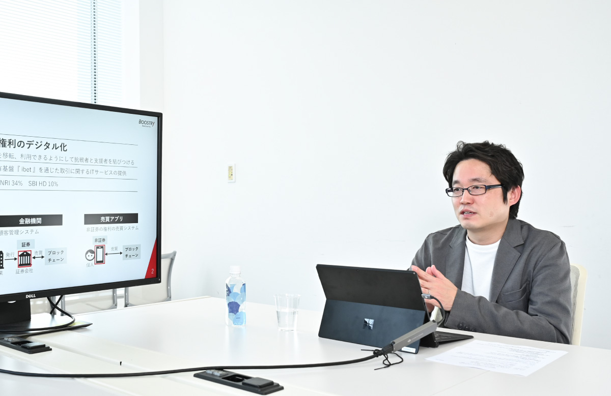当社はミッションとして「全ての権利をデジタル化し、権利の移転や移動、利用を自由にできるようにすること」と掲げているのですが、権利をデジタル化することで、「挑戦者」と「支援者」がつながりやすくなると考えています。社名の「BOOSTRY」にも、“Boost your try”(あなたの挑戦をブーストしましょう)というメッセージを込めています。
