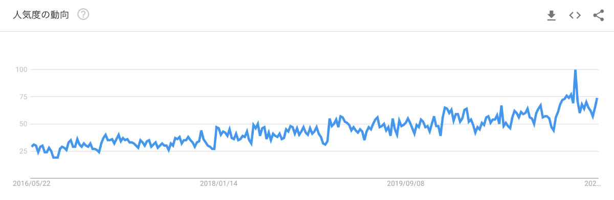 まずは下記のGoogleトレンドをご覧ください。実際、「副業」の検索数の推移は、年々上昇傾向にあり、新しい働き方が叫ばれる時代においては、この流れがさらに加速していくことが予想されます。