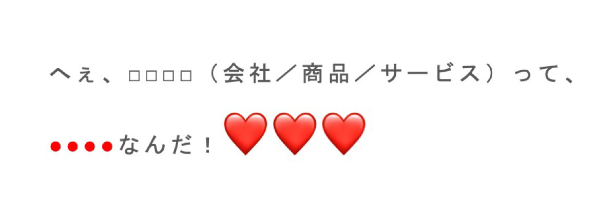 □□□□に自分の会社の名前や商品名を入れたとき、○○○○には何が入るか。そして、何と入れると、その後ろに付けたハートマークがより大きくなるか、生活者にとっての幸せが大きくなるか。つまり、企業視点ではなく生活者視点でとことん考えていただきます。