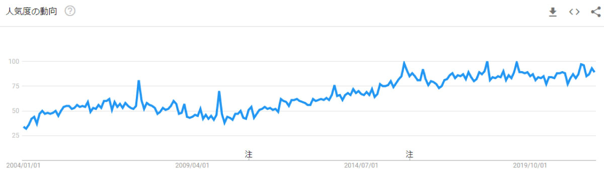 かつて、「朝活」が注目を集めていましたが、最近でも「朝」への注目度が高いことが、以下のGoogleトレンドを見ていただくと、よくおわかりいただけるかと思います。