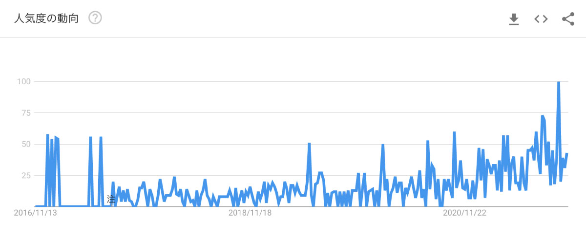 その走りともいえる存在のひとつが、いわゆる「教育系YouTube」で、今やインテリ芸能人など著名人も続々参入しており、ひとつのジャンルとして確立されてきました。事実、GoogleトレンドのYouTube検索で「教養」というワードで調べてみると、2019年あたりから上昇傾向にあり、教養コンテンツへの注目度が非常に高まっていることがわかります。