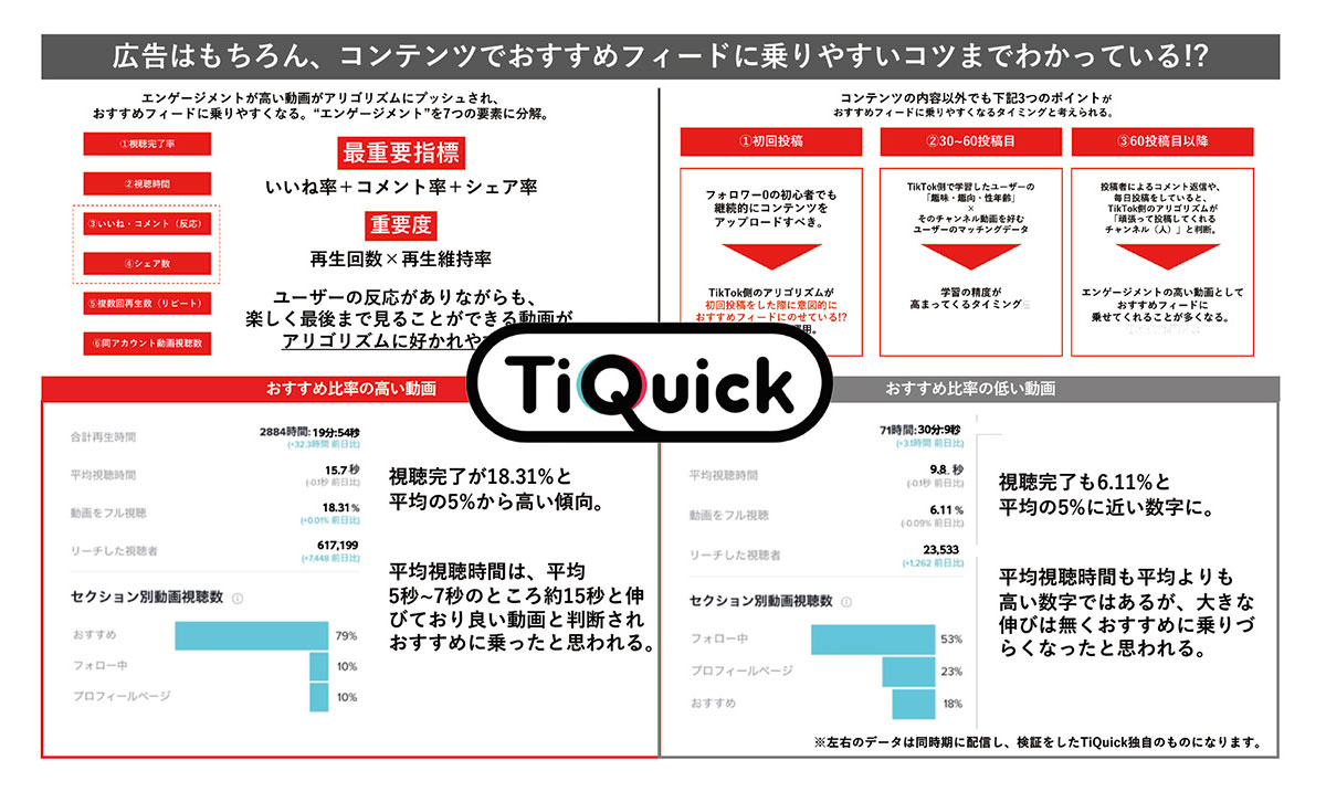 「TiQuick」はTikTok For Business Japanと広告会社が初めて連携したクリエイティブチームとして2021年初めに立ち上げました。未知な部分も多いTikTokの分析から取り扱いの説明まで、全てサポートする機関です。これも自主的にTikTokへラブコールを送り立ち上げました。週次で行われるチームの定例会には、株式会社TORIHADAのメンバーも参加し、ワンテーブルで博報堂DYグループ内の実績が集約されます。コンテンツの出し分けがよりマルチに行われるTikTokのアルゴリズムでは、なかなか“俯瞰”してメディアのことを見ることができません。何が流行っていて、何が人気なのかを冷静に判断し、企画に落とし込むためには、自分以外のフィードを覗き見させてもらうことも大事な習慣です。