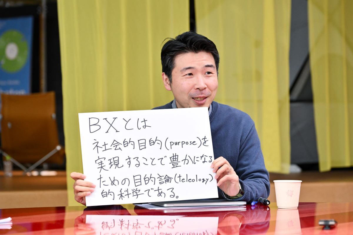 BXが社会にどう還元されるのかという視点がとても大事だと思っています。BXには社会的価値を作り出す側面があり、それは企業活動、政治・経済、あるいは社会・文化など、さまざまなものに影響を与えるものだと思います。BXが世の中を良くしていくことに貢献し、新しい社会を創っていく。そういう大きな視点を込めたいと考えて、このような表現にしました。