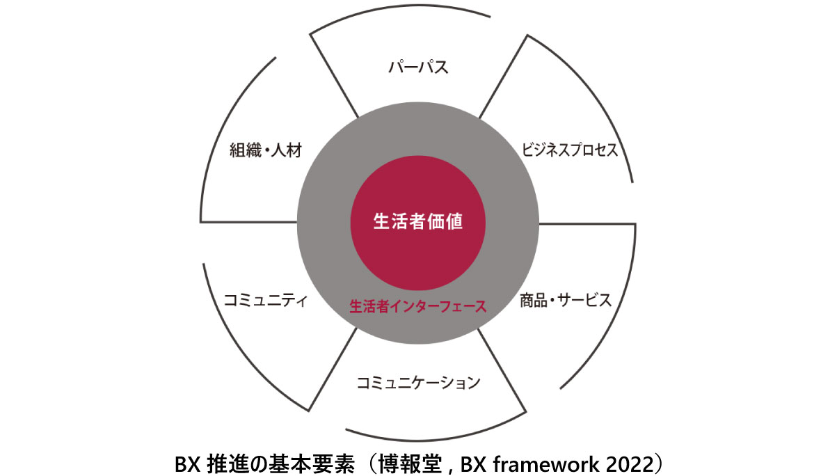 BXの図の中心に「生活者価値」を置いていますが、ここは常にゆるがない部分だと思うのです。企業はまず、生活者に何を提供するのか、ステークホルダーと何を共創するのかを決める。それを真ん中に置いた上で、「組織・人材」をきっちりマネジメントしましょうとか、組織は緩くてもいいから「商品・サービス」で管理していきましょうとか、6要素をそれぞれどう位置付けていくかの議論ができるのだと思います。指針という意味で言えば、生活者と共創する価値をまず決めてください、その上で各要素の色分けはある程度自由で構いません、という形になるのかもしれないですね。
