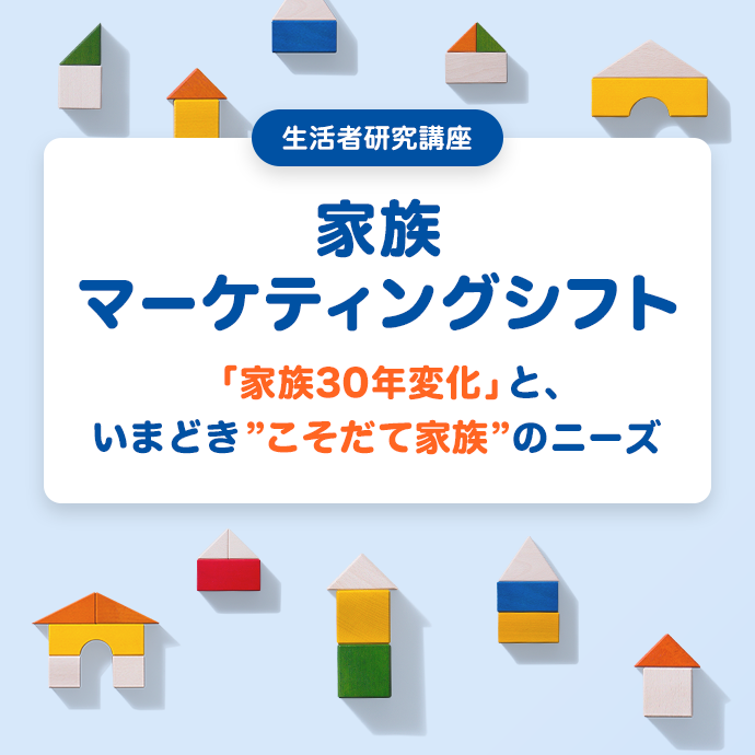 社会の将来予測が難しくなる中、日本の「家族」の在り方は、少子高齢化や夫婦の共働き化などの動きとも相まって、大きな転換期を迎えています。実際、今の「家族生活」は、どんな意識で営まれ、どんな行動を生み出しているのか?企業にとっても、固定観念で捉えがちだった「家族」に対する考え方をいったんリセットして、生活者の意識・行動の変化を理解することは、マーケティング戦略を考える上で急務となっています。