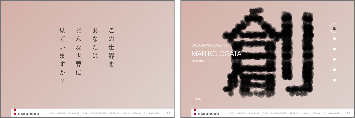 博報堂WEBサイトのカバーは、「クリエイターズカバー」と題し、博報堂のクリエイタ―のオリジナル作品を掲載しています。さまざまなクリエイタ―が担当していく本企画。第一回のクリエイティブディレクター・榎本卓朗に続き、今回、博報堂のコピーライター/クリエイティブディレクター・尾形真理子が制作を担当しました。