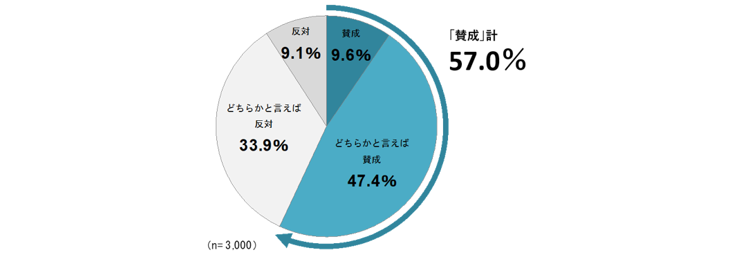 - 男女別では賛成との回答が男性で59.9%、女性では54.1%となり、どちらも賛成が反対を上回りました。