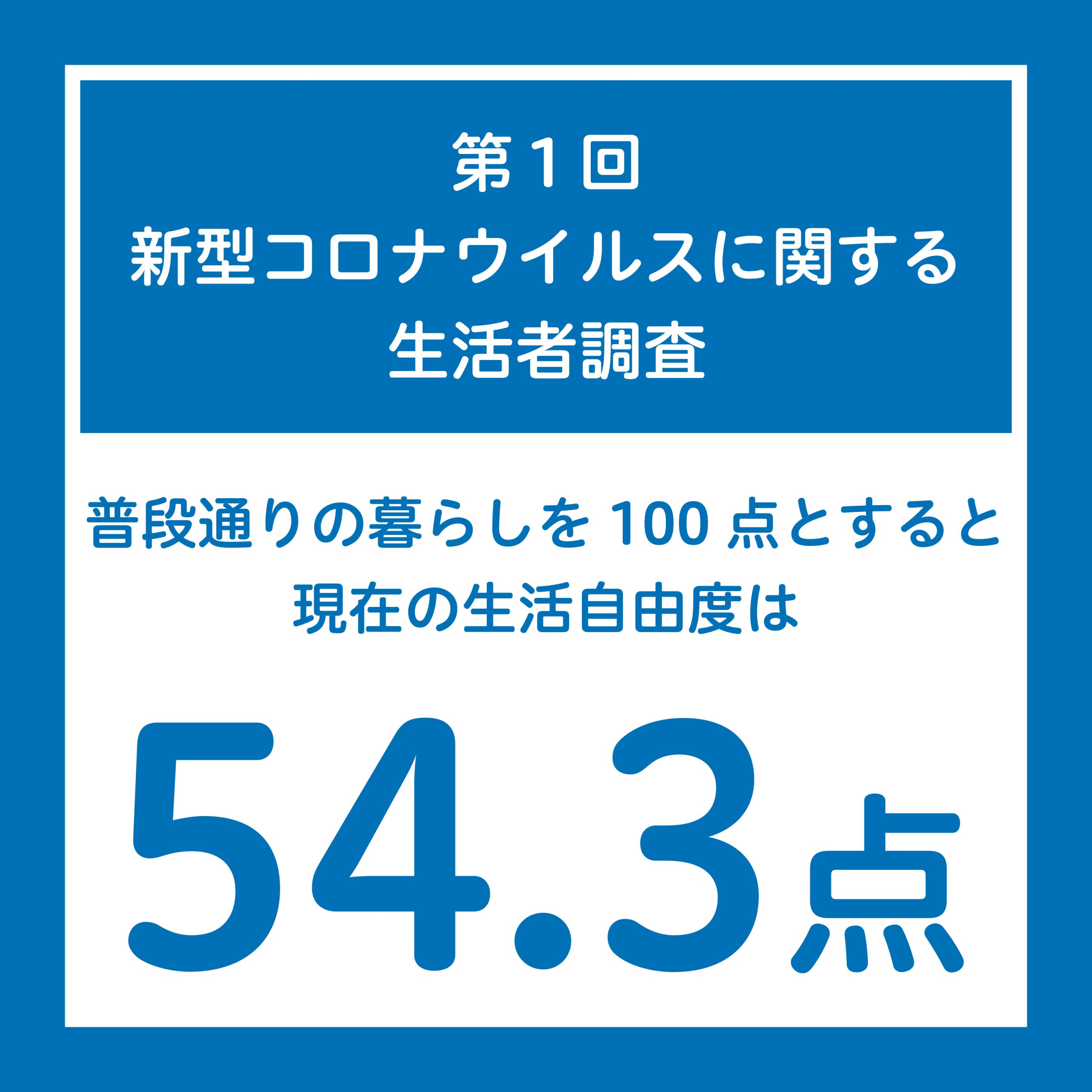 感染拡大以前の普段の状態を100点としたとき、現在の状況下における「生活自由度」が何点くらいかをきいたところ、61.4点となりました。6月19日付で都道府県外への移動制限が解除されたこともあり、6月調査の数値から4.4ポイント上昇し、4回の調査で最高値となりました。