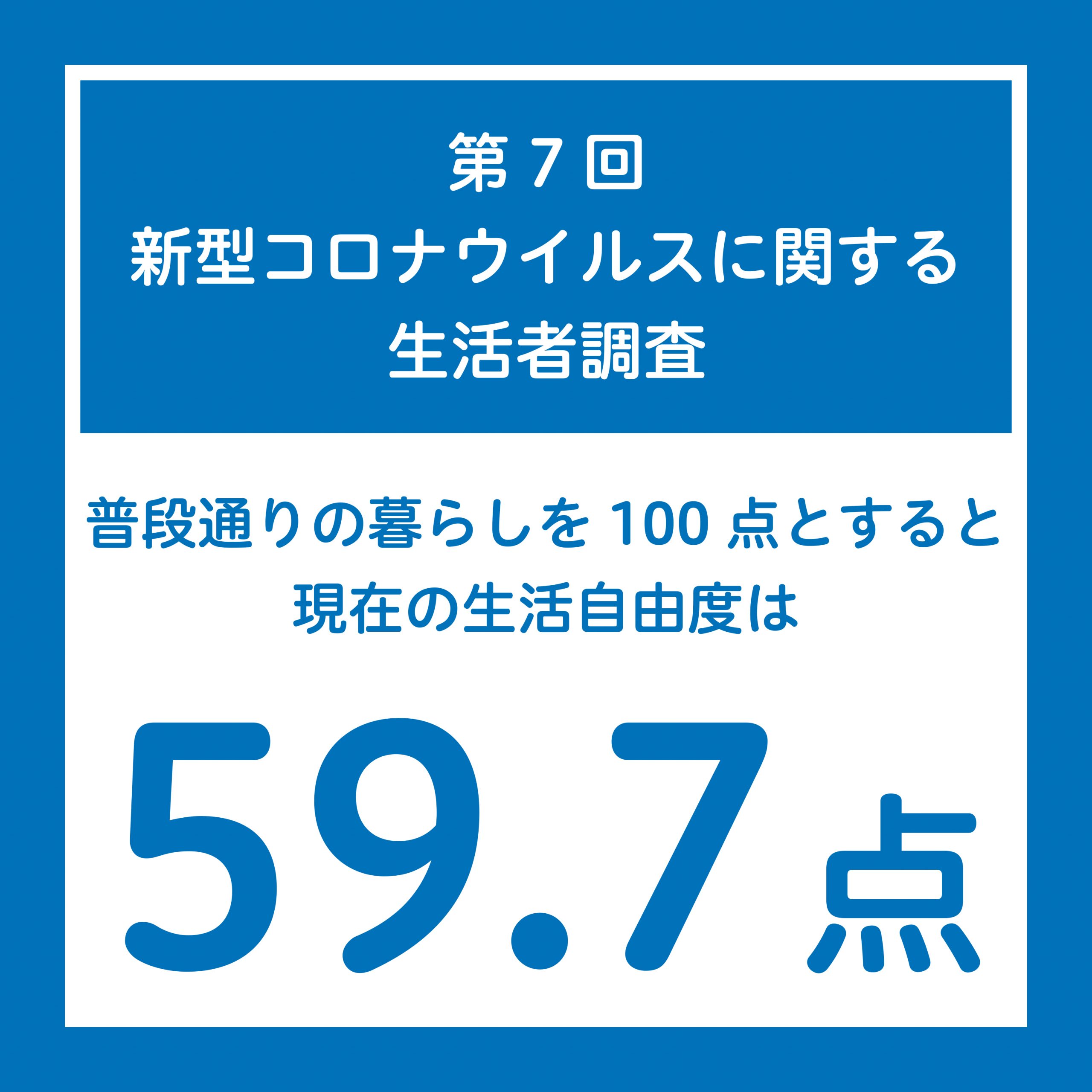 感染拡大以前の普段の状態を100点としたとき、現在の状況下における「生活自由度」が何点くらいかをきいたところ、56.3点と、12月からは2.6ポイント減少。2か月連続で減少となりました。