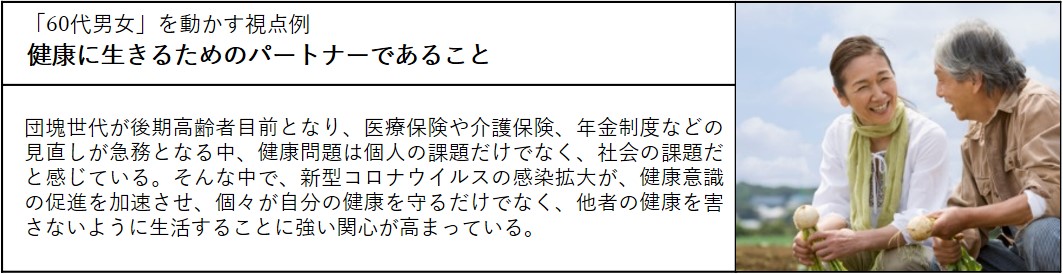 この観点をもとに、世代や性別ごとの「生活者を動かすブランドパーパスの視点」を博報堂独自に抽出しました。以下、参考に3つの例をご紹介します。