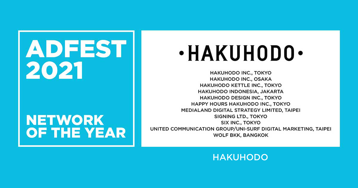 「ADFEST(アジア太平洋広告祭)2021 」の授賞式が4月8日にオンライン開催され、博報堂が、最もクリエイティビティの高い広告会社ネットワークに贈られるNetwork of the Year(ネットワーク・オブ・ザ・イヤー賞)の栄誉に輝きました。